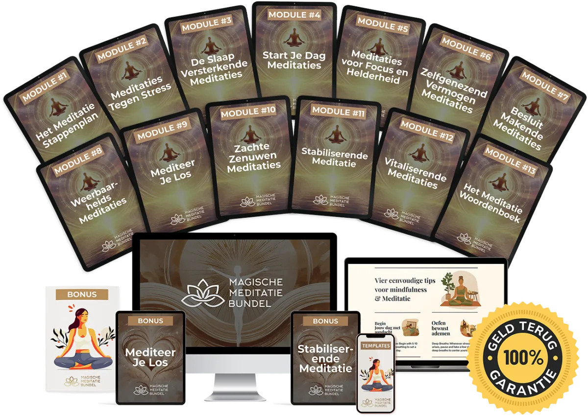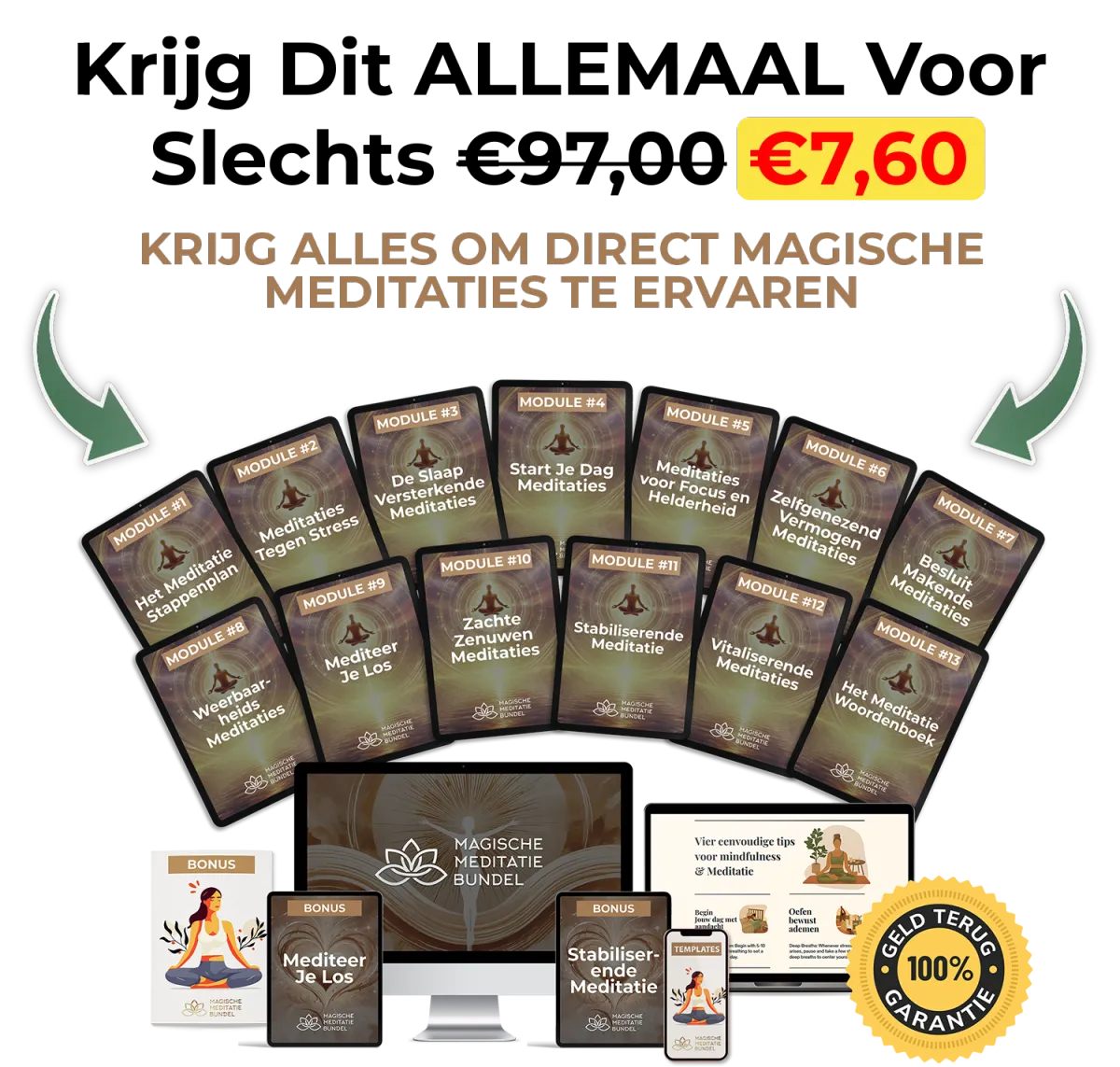 Met de “Magische Meditatie Bundel” bemachtig je ALLES wat je nodig hebt om eindelijk het maximale te halen uit meditaties en mediteren, ongeacht je huidige staat van zijn en ervaringen.